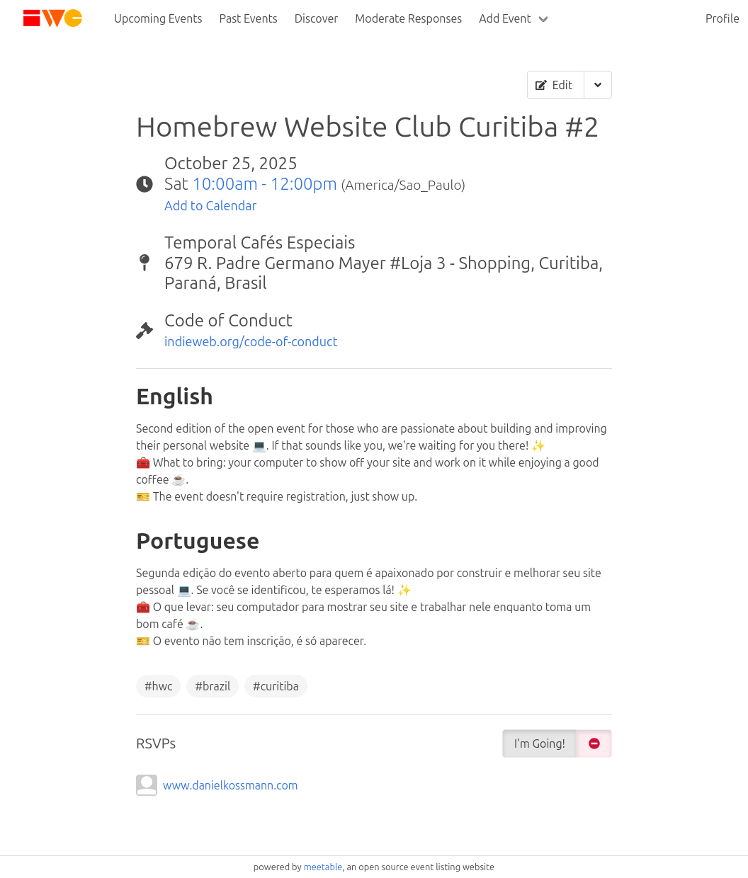 There are some other things that I could do, like updating the Homebrew Website Club page with the event and creating an event page with metadata about it, but I already used more time that I was planning to for the above, so I will try this for the next event. My goal is always to do 1% better each time, so for this event I already accomplished that.